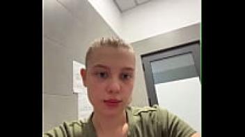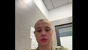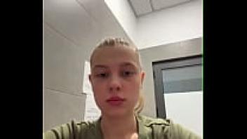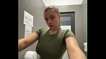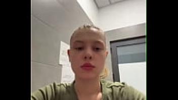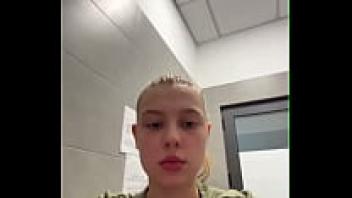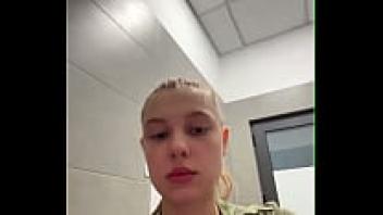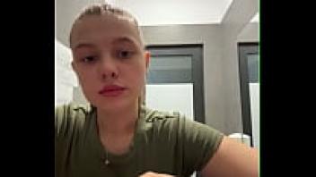 In front of the camera, a gorgeous stepsister with large tits and white stockings spreads her legs and engages in sexy masturbation.