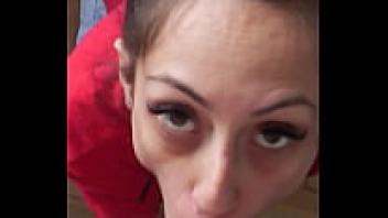 She spit on her feet, cum in her mouth, and amateur blowjob. Cum feet
