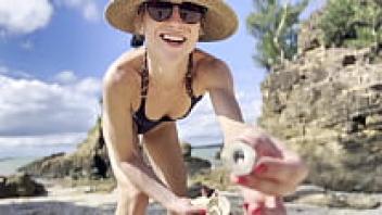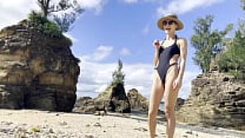 On a private beach, LETSDOEIT's Cecilia Scott, a gorgeous Hungarian blonde, blows her man away.