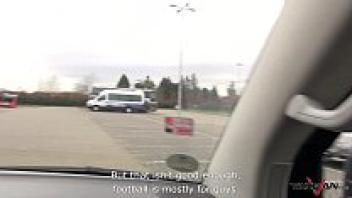 Sperm smeared the ugly MILF teacher's spectacles in the van.
