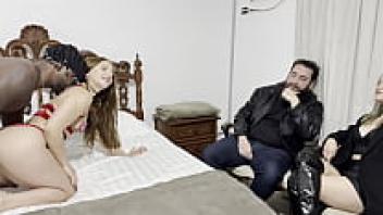 While we were watching a movie, my hubby's best friend showed me slow affection (cuckold thrashed).