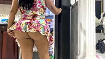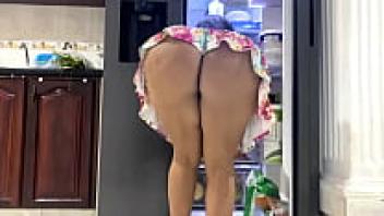 I record my stepmother's upskirt while she cleans the refrigerator.