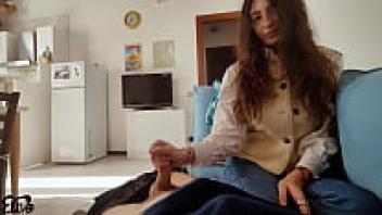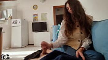 When a boy pleads for a blowjob, all he gets is a handjob.[Amateur Italian]