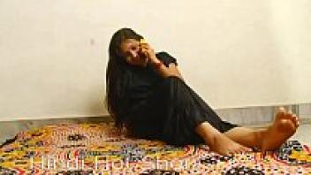 A gorgeous Indian girl masturbates over the phone.