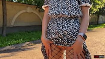 Plug-in Fishnet Pantyhose Pee with Public Solo Upskirt Flashing Ass