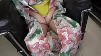 Japanese beauty, 18 years old. Before engaging in creampie sex, Nonomiya-chan, who has large breasts and black hair, caresses and masturbates while dressed in traditional Japanese clothing. unrestricted. Gorgeous shaved pussy