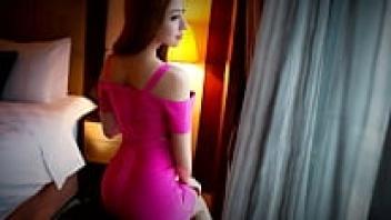 A tiny Chinese model leaps on a large penis.