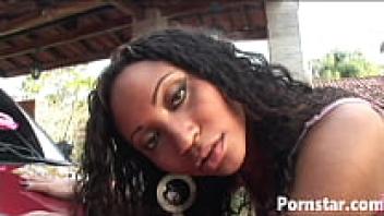 Skyy Black, a gorgeous black woman, sucks a BBC outside.