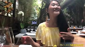 Skinny hot Chinese tourist bangs white guy she just met in a hotel lobby