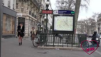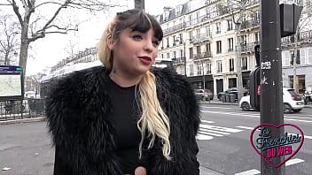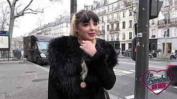 A slim French brunette in stockings is shown on an amateur anal casting couch.