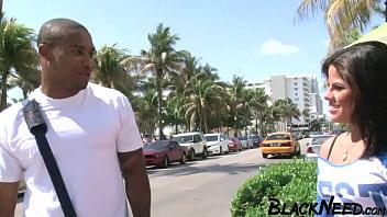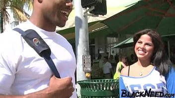 A horny amateur in an interracial sex video
