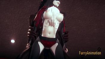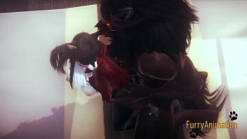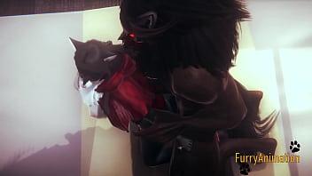 Furry Hentai - Beast and Black Cat having wild sex with creampie - Yiff anime manga japanese cartoon porn 3D