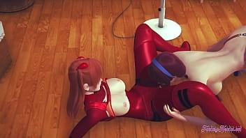 Evangelion Hentai Yuri 3D - Mari do a cunnilingus and rubs boobs to Asuka - Japanese Asian Manga anime game cartoon porn lesbian animation
