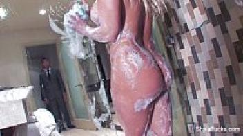 A bubble Vanessa Cage is adored and has her ass oiled up.