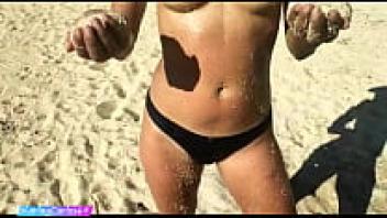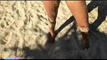 On a public beach, a girl masturbates her partner.