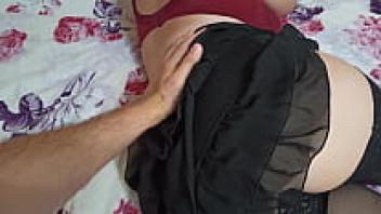 A slim French brunette in stockings is shown on an amateur anal casting couch.