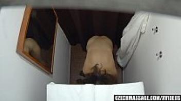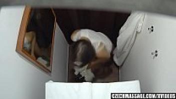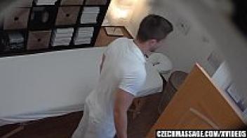 Seduction of a Young Brunette on a Massage Table with Glasses