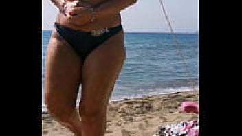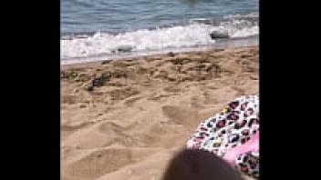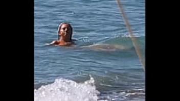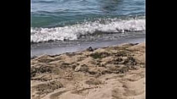 Miss Creamy, a French instructor, blowjobs a stranger on a nude beach with a cumshot.