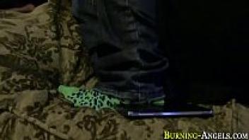 Babe, I love the gym. Chessie Kay's face is adored when she sucks three cocks with her multidick.