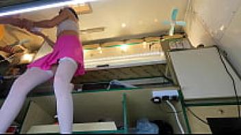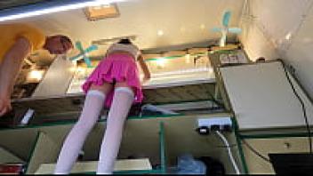 A cute 18-year-old brunette was caught on camera upskirting at work.