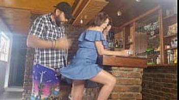 Vertical video portrait mode of a skinny amateur couple having sex in the shower