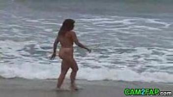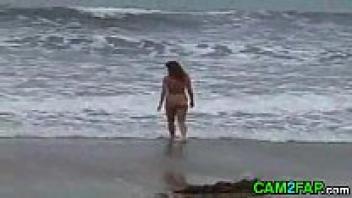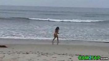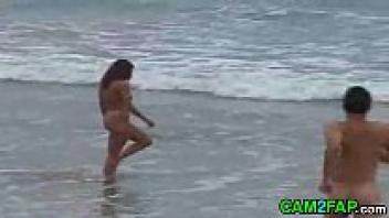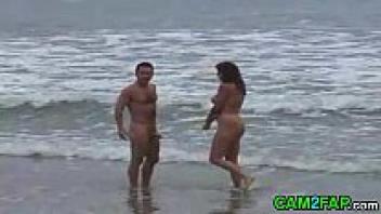 Stranger Voyeur Entices Slim Nudist Teen Aliz to Have Beach Ass Sex