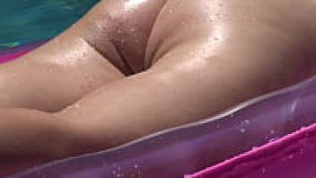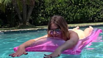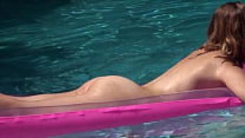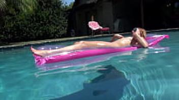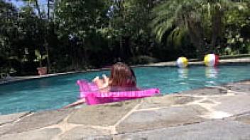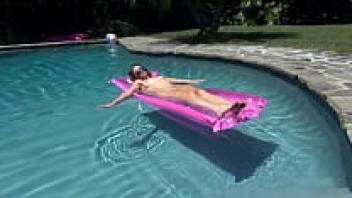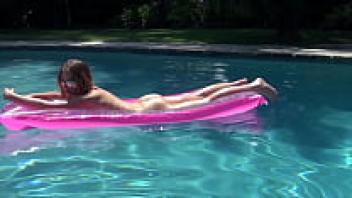 Machiko Ono, a young Japanese teen, is having a great time at the swimming pool.