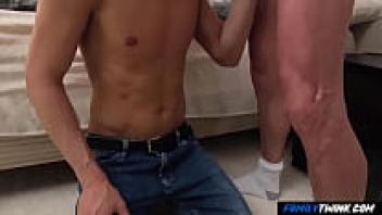 Twink's First Gay Experience in a Passionate Threesome With Two Hot Muscle Jocks