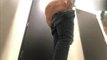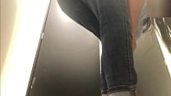 Camera footage of a large ass and a curvy girl in the gym's public restroom