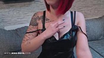 Wearing a tight wetlook dress in a new video