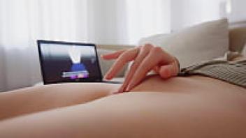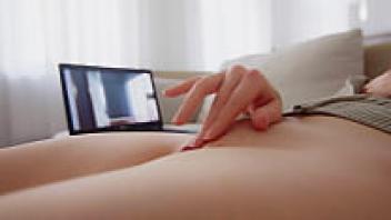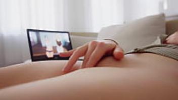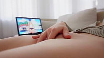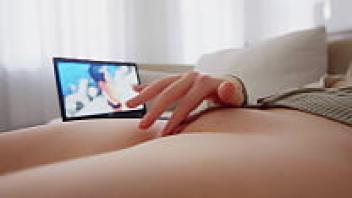 Close-up of me cuming and squirting while watching HENTAI on my laptop