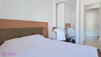 Stepson is seduced by a horny stepmother, who then swallows all of his sperm.