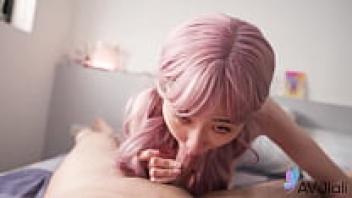 Petite Japanese blonde Lapdance Girl seduces to oiled uncensored Creampie Sex with Client