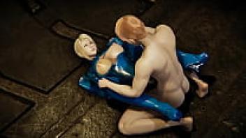BDSM: A blonde lesbian with an oiled body gets bound up.