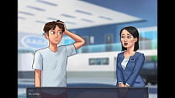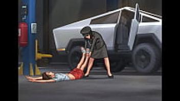 A Korean employee engages in rough sex with a customer in a fancy car during the summer (Kim scene)