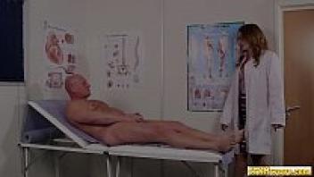 Cock-tugging babies are instructed by a CFNM euro nurse.