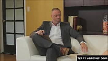 Sex massage from busty ladyboy shemale Green who rides him anal on top