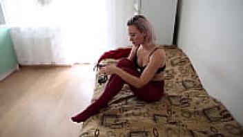 Part 1 of Sofi Handcuffs' Self-bondage in Pantyhose