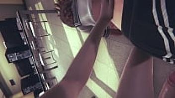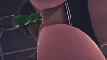 Sara enjoys Hentai Uncensored 3D, a Japanese Asian manga anime game, with two dildos and a squirt.