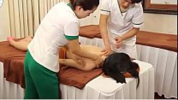 On a massage table, gay sex