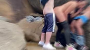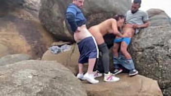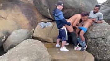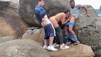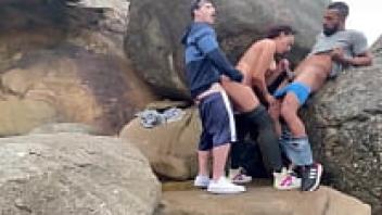 On the beach, threesome sex with double penetration
