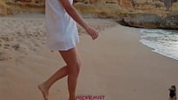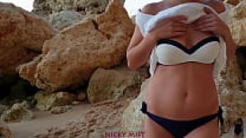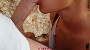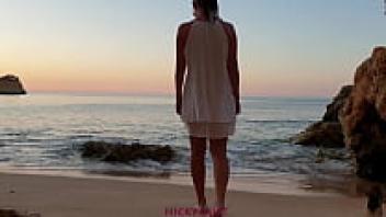 At the beach, a Spanish girl swallow cum