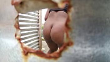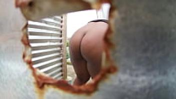 Voyeur spying on large-butted, adult lesbians outside. In the wild, chubby milfs wash by the river. PAWG and amateur fetish. Both exhibitionism and nudism.