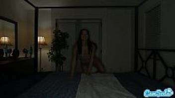 Emily Willis, a little teen from Camsoda, is smeared with grease and wearing see-through underwear.