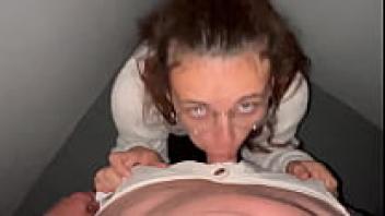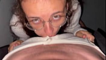 I loved her at home after she finished putting on her spectacles, and she sucked on me in the doorway.