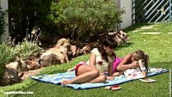 SapphiX's sensuous lesbian encounter with lawn lesbians