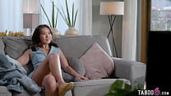 When her husband loves her, the Asian teen babysitter squirts on his large cock.