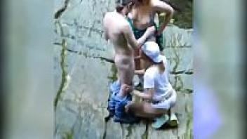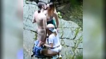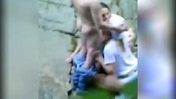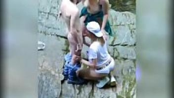 Voyeur witnesses two dirty people sucking fortunate while having sex in the street.