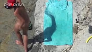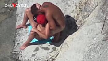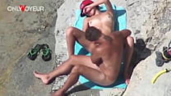 Voyeur Beach. A well-proportioned teenager having sex on a public beach