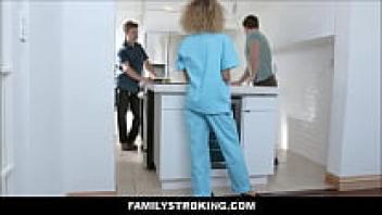 Her brother's junk is healed by her adorable little black teen nurse step-sister.